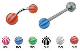 Cirurgenstahl Standard-Länge 10mm Standard-Stärke 1,6mm Bauchnabel-Banane mit Acryl "Wassermelonen" zweifarbig Kugeln 6+8mm. Bitte Farbkombination auswählen !